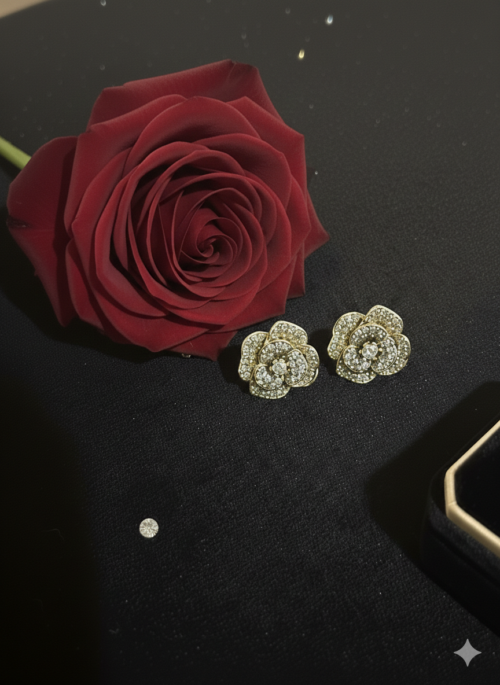 Antique finish – A multi-layered petal arrangement that creates a realistic, three-dimensional floral silhouette. Each petal is intricately encrusted with crystals, ensuring they catch the light from every angle.